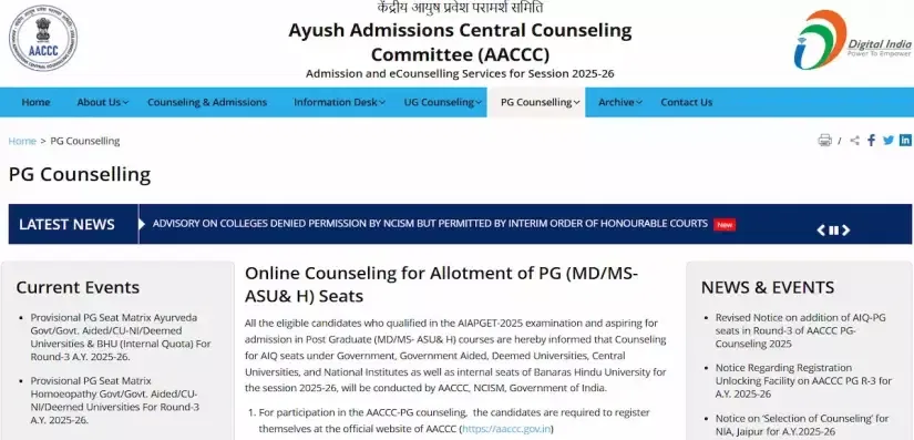AIAPGET Round 3 Seat Allotment Result 2025: The Ayush Admissions Central Counselling Committee (AACCC) has released the seat allotment result for the AIAPGET Round 3 Counselling 2025 today, November 6, 2025. The AIAPGET Round 3 Seat Allotment List 2025 will include the candidate's name, AIAPGET roll number, and rank, along with the specific college, course, and category for which they have been allotted a seat.