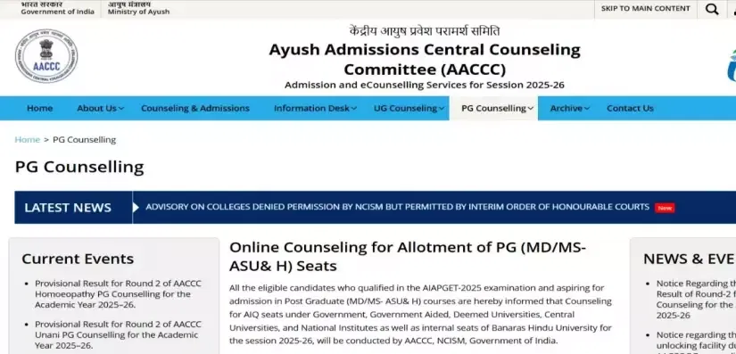 AIAPGET Seat Allotment 2025 Round 2: The AYUSH Admissions Central Counselling Committee has released the final seat allotment result for homeopathy, unani, and ayurved programmes today, October 9, 2025. Registered candidates who have filled out course and college choices can now review their seat status by visiting the official portal of AACCC.