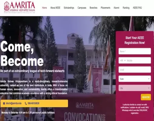 Amrita Vishwavidyapeetham has released the AEEE 2026 Application Form. Interested and eligible candidates can apply online at the official website- aeee.amrita.edu.