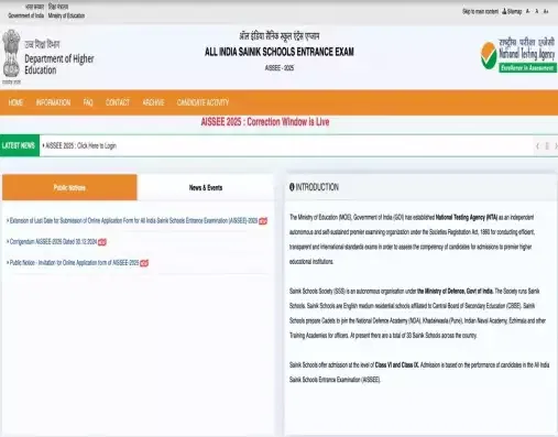 AISSEE 2025 Application Correction: The National Testing Agency will soon close the registration window for the All India Sainik School Entrance Examination (AISSEE 2025). Candidates who want to make changes to their application form must know that the AISSEE 2025 Application Correction Window Closes Soon on the official website - exams.nta.ac.in/AISSEE/. According to the updates, the AISSEE 2025 Application Correction Window will close on January 28, 2025.