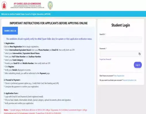In order to register for AP OAMDC Phase 2 Counselling, candidates need to go to the official portal, oamdc.ucanapply.com, and click on the OAMDC 2025 link. Once the Phase 2 registration choice is made, applicants should log in using their current credentials or register for a new account. The process requires filling in the application form with mandatory information, scanning necessary documents such as certificates and photographs, online payment of the fixed registration fee, and finally, submitting the filled-in application form.