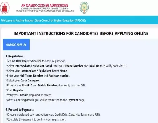 AP OAMDC Registration 2025: The Andhra Pradesh State Council of Higher Education (APSCHE) will conclude the registration process of the Andhra Pradesh Online Admissions Module for Degree Colleges (AP OAMDC) Phase 1 Counselling 2025 today, September 3, 2025. Candidates can register for the AP OAMDC Counselling 2025 at the official website- oamdc.ucanapply.com. Likewise, APSCHE has also entended the AP OAMDC Choice Filling 2025 dates till tomorrow, September 4, 2025. Interested candidates can access the AP OAMDC Registration 2025 link availabe here with important instructions