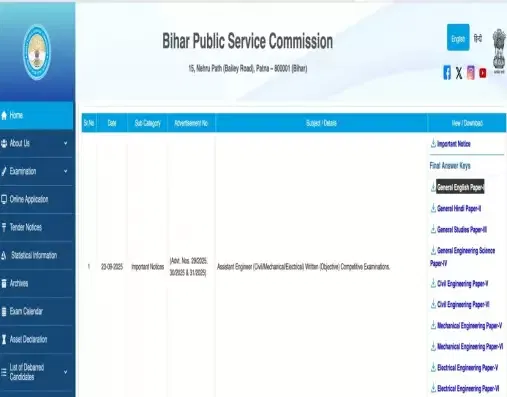 BPSC AE Result 2025 is expected soon; meanwhile, candidates can go through the final answer key. For more updates, aspirants are advised to visit the official portal.