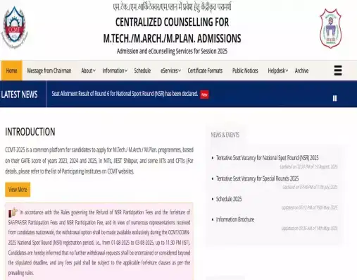 Furthermore, visit the official website of the Centralised Counselling For M.Tech./M.Arch./M.Plan Admission Committee for more information on CCMT NSR Spot Round Seat Allotment Result 2025 and more.