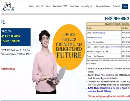 COMEDK Mock Allotment 2025: The mock allotment result for COMEDK UGET has been released today, July 22, 2025 at the online portal. Candidates can access the download link to allotment result from the official website by provdidng their user name and password. The mock allotment have included candidates who have successfully completed choice filling by July 20, 2025.