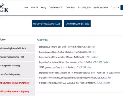 COMEDK Round 1 Cutoff 2025: The Consortium of Medical, Engineering, and Dental Colleges in Karnataka has published the college-wise cutoff ranks for various engineering branches on July 28, 2025. Candidates who have registered and filled choices for Round 1 counselling can access a direct link to the cutoff PDF from the website without logging into the portal. The cutoffs have been released in the form of opening and closing ranks. Along with the cutoffs, the COMEDK seat allotment result is updated by the authorities. Candidates can refer to the cutoff rank of their chosen course and college to get a fair idea of their admission chances. We have provided the COMEDK Round 1 cutoff rank list PDF 2025 and some important details here.