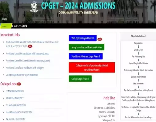 - Go to the official TS CPGET- 2024 admissions website- cpget.ouadmissions.com.