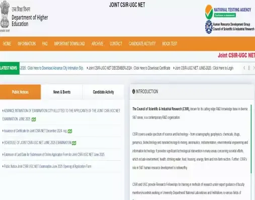 - On the homepage, click on the link related to the CSIR UGC NET Admit Card 2025.