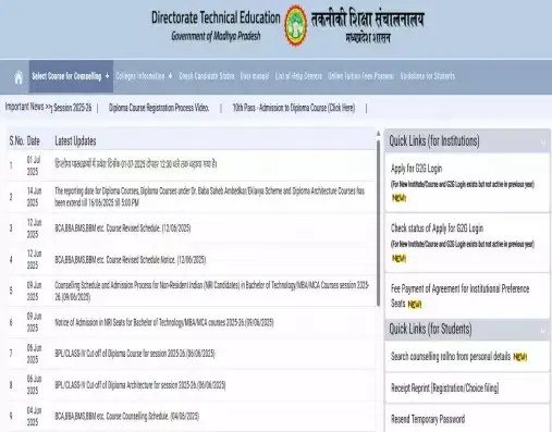 - Candidates must log in to the official website, dte.mponline.gov.in, using their roll number/application number and date of birth to check their allotment status.