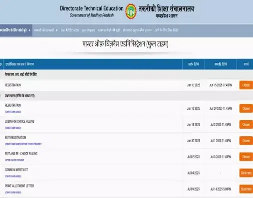 DTE MP MBA Seat Allotment 2025: The Directorate of Technical Education has released the seat allotment on July 9, 2025. Students who have completed registration and choice filling can access the allotment result from the online portal. To download the allotment slip for the first round, candidates are required to provide their roll number, date of birth, and password.