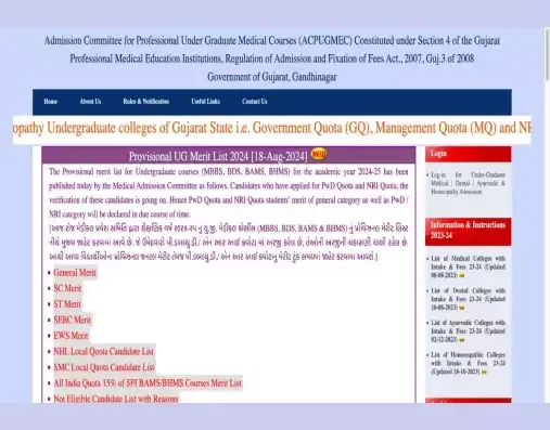 Below candidate can check the Gujarat NEET UG MBBS/BDS Merit list 2024 for different categories: