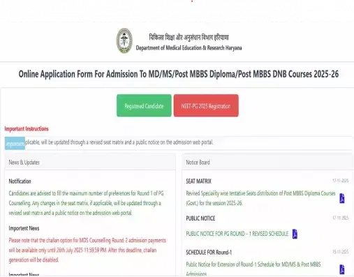 Haryana NEET PG Round 1 Revised Counselling Dates 2025