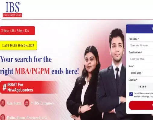 IBSAT 2025 Registration: ICFAI Business School will soon close the application window for the MBA/PGPM admission test. Candidates aspiring to appear for the management entrance exam to secure a seat at 9 IBS campuses must apply online by December 19, 2025. To register for IBSAT, candidates have to provide basic details, including their name, gender, mobile number, email, and current address.