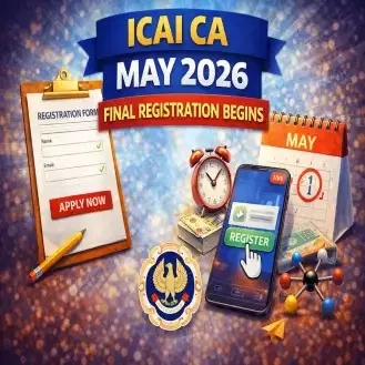 ICAI CA May 2026 Final Registration : The Institute of Chartered Accountants of India began accepting registrations for the ICAI CA on March 3, 2026. The last date to fill out the application form is March 16, 2026 (without late fees), and March 19, 2026 (with late fees). The form correction window will also be made available for the candidates. The window will be active from March 20 to March 22, 2026.