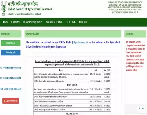 ICAR Round 3 Seat Allotment 2025 Result Expected Release Time: The Indian Council of Agricultural Research (ICAR) will release the seat allotment result for the ICAR Round 3 Counselling 2025 on November 6, 2025. The ICAR Round 3 Seat Allotment 2025 Result will be released online at the official website- icarcounseling.com. Candidates who are satisfied with the allotted seat must pay the mandatory seat acceptance fee (INR 10,000) online by tomorrow, November 7, 2025, to confirm admission. Interested candidates can check the ICAR Round 3 Seat Allotment 2025 Result Expected Release Time available here.