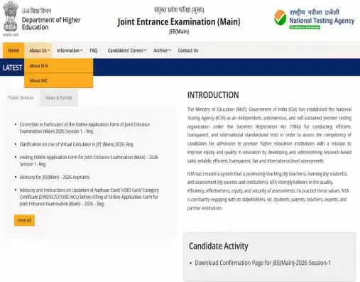 Candidates have to visit the official website of the National Testing Agency (NTA) to download the JEE Main 2026 Season 1 Admit Card.