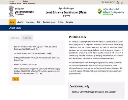 Candidates have to visit the official website of the JEE Main (jeemain.nta.nic.in) regularly to get all the updates regarding the release of the JEE Main 2026 Season 1 City Intimation Slip.