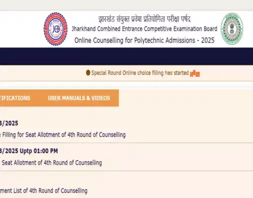Jharkhand Polytechnic 2025 Registration for Round 4: Candidates who have qualified the polytechnic entrance examination can register for counselling till today, August 27, 2025. To register at the online portal of Jharkhand Combined Entrance Competitive Examination Board by providing the required credentials. After registration, candidates should fill out course and college choices on the dashboard.