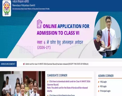 JNVST 2026 Class 6 Admit Card Download Link Activated.