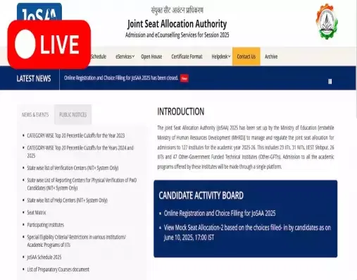 The last date to register for the Joint Seat Allocation Authority (JoSAA) was 12th June 2025. The registration window was closed at 5:00 PM.