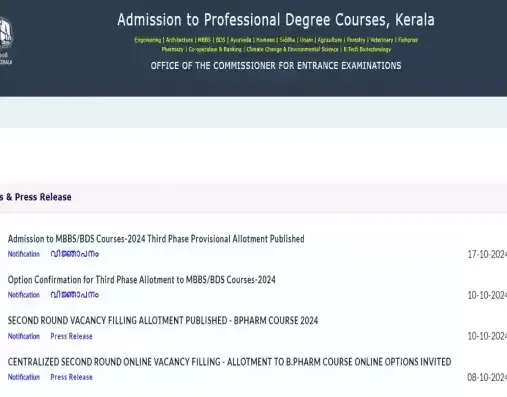 Kerala NEET UG Round 3 Seat Allotment Result 2024: The Commissioner for Entrance Examinations (CEE), Kerala activated the link for Kerala NEET UG 2024 Round 3 Seat Allotment Result is now available on the official website at www.cee.kerala.gov.in. The provisional results were published on October 16, 2024. Candidates must report to their respective institutes between October 19, 2024, and October 23, 2024.
