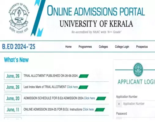 Kerala University B.Ed Trial Allotment 2024: The University of Kerala has released the trial allotment today June 26, 2024. The Kerala University B.Ed Trial Allotment Link 2024 has been added here. To access the allotment candidate needs to enter the application number and password. Candidates satisfied with the allocated college in the trial allotment can wait for the first allotment scheduled on June 29 2024. However, if a candidate is not satisfied with the allocated college then he/she can make changes in the option. As per the official schedule, the last date to make changes to the filled option is June 28 2024.
