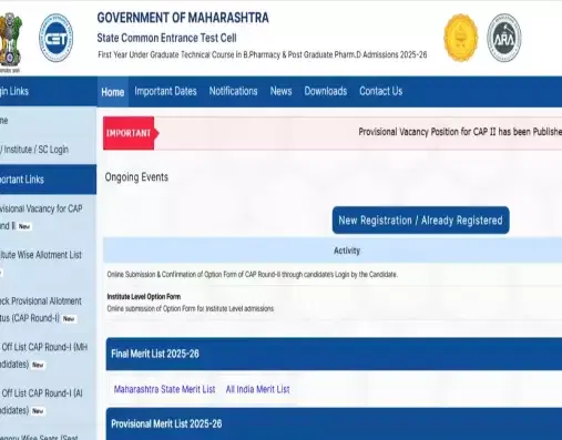 Maharashtra B.Pharma Round 2 Option Form 2025: The Maharashtra Common Entrance Test Cell started the option form entry for the Round 2 B.Pharmacy programme today, October 8, 2025. Candidates who have registered and verified documents can now log in to the CET portal using their user ID and password to select courses and colleges for seat allotment.