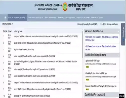 - The DTE will not be responsible for any sort of delay in receiving any communication due to any issues. Therefore, Candidates should visit dte.mponline.gov.in regularly