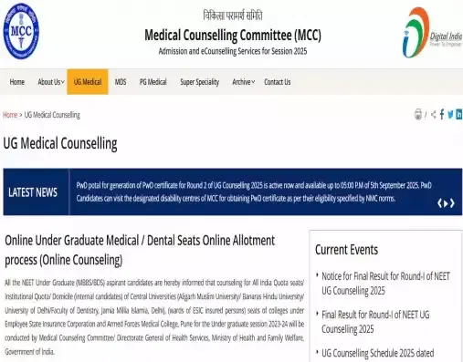 As per the NEET UG Round 2 Counselling Registration 2025 Dates, the resignation window for Round 1 seats without forfeiture of the security deposit has been extended until 5 PM on September 3, 2025. Likewise, the PwD portal for generating disability certificates for Round 2 is active and will remain open until 5 PM on September 5, 2025. Candidates are advised to visit the official website of MCC for more information on NEET UG Round 2 Counselling 2025 and more.