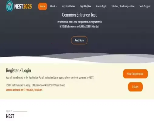 Candidates must visit the official website for more details about the NEST 2025 Registration, Application, and Exam details.