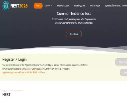 NEST 2026 Application Form: The NISER Bhubaneswar and Mumbai University-Department of Atomic Energy Centre for Excellence in Basic Sciences will begin the online application window for the National Screening Entrance Test today, January 5, 2026. NEST is taken by students willing to enroll in a 5-year integrated MSc program in basic sciences. The application process will be conducted in online mode: no offline forms will be made available.