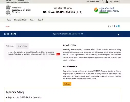 - Visit the official website - exams.nta.nic.in/shreshta/.