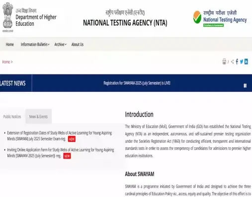 NTA SWAYAM July 2025 Application Form: Direct Link