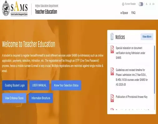 - Candidates must select the Freeze option and pay the admission fees online via the SAMS portal. The window for this is open from August 26, 2025 (4 PM) to September 1, 2025 (3 PM).