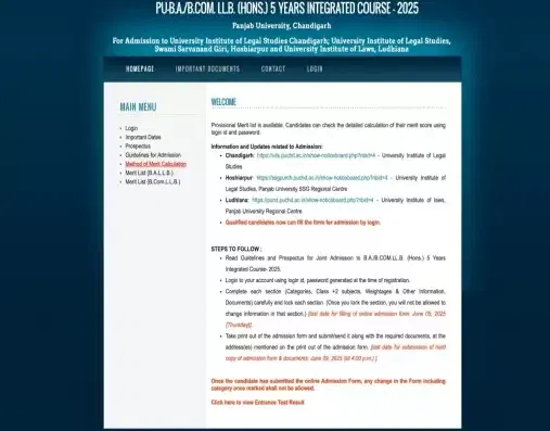 Punjab 5-Year LLB Second Provisional Merit List 2025: The Punjab University is set to release the 5-Year LLB Second Provisional Merit List 2025 today, July 17, 2025. The authorities have not officially announced the release time. However, considering media reports and past trends, the Punjab 5-Year LLB Second Provisional Merit List 2025 Expected Time is between 10:00 AM and 1:00 PM. The 5-Year LLB Second Provisional Merit List 2025 will be made available on the official website - uglaw.puchd.ac.in.