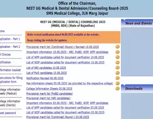 Rajasthan NEET UG Revised Merit List 2025 Download Link