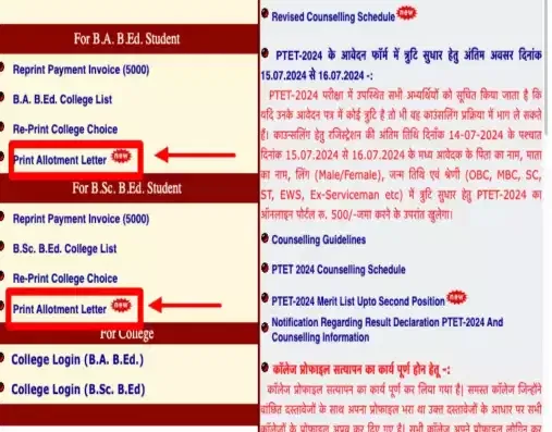 - Rajasthan PTET B.Ed 4 Year Seat Allotment 2024 Release Time