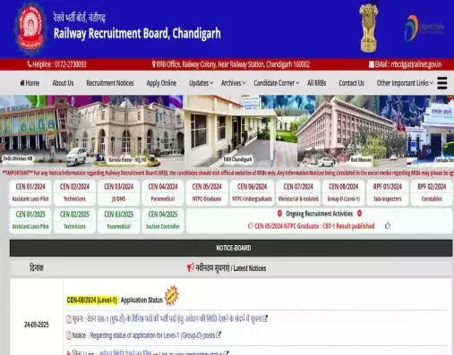 - Visit the official website of your Regional RRB (e.g., rrbcdg.gov.in for RRB Chandigarh).