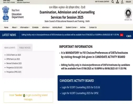 - Browse to the official website of SCERT-scertdelhi.admissions.nic.in.