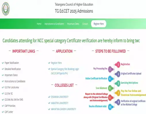 - Candidates must login to the official website of the Telangana Council of Higher Education with their TG EdCET Hall Ticket number and Rank to exercise TG EDCET Web Options 2025.