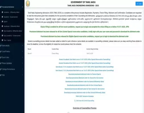 TNEA Round 1 Tentative Allotment Result 2025: The Directorate of Technical Education, Chennai, has started the TNEA 2025 Round 1 Choice Filling Starts for 1 to 39145 Rank. The authorities will close the TNEA 2025 Round 1 Choice Filling process on July 16, 2025. Candidates who will complete the choice filling before the due date will be eligible for the seat allotment. According to the official schedule, the TNEA Round 1 Tentative Allotment Result 2025 is scheduled to be released on July 17, 2025.