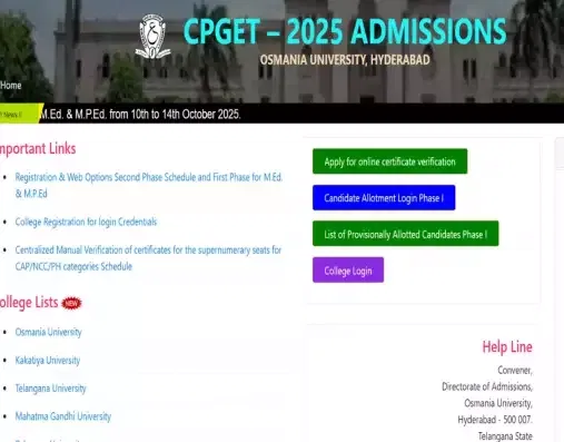 TS CPGET Phase 2 Registration 2025:The Directorate of Admissions, Osmania University, has started the online registration for Phase 2 counselling today, October 10, 2025. Candidates who missed participating in the first phase can register on the online portal and verify their certificates. To register, candiadets are required to log in using their hall ticket number, rank, and date of birth.