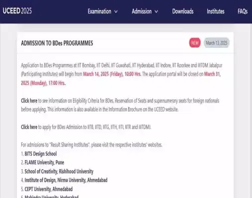 UCEED 2025 Registration Closes Today: The Indian Institute of Technology Bombay (IIT Bombay) will conclude the registration process for the Undergraduate Common Entrance Examination for Design (UCEED) 2025 today, March 31, 2025, by 5 PM. Candidates willing to pursue Bachelor of Design (B.Des) programs offered by participating institutes like IIT Bombay, IIT Guwahati, IIT Hyderabad, and IIITDM Jabalpur, can apply for the UCEED 2025 Registration at the official website- uceed.iitb.ac.in.