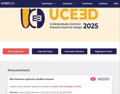 UCEED Admission Registration 2025 Dates Extended: The Indian Institute of Technology Bombay (IIT Bombay) has extended the last date to apply for the Undergraduate Common Entrance Examination for Design (UCEED) 2025. Previously, the last date to apply for UCEED 2025 was March 31, 2025. Candidates who couldn't apply before have a chance now to apply for the UCEED Admission Registration 2025. Get the direct link available here with the revised date details.