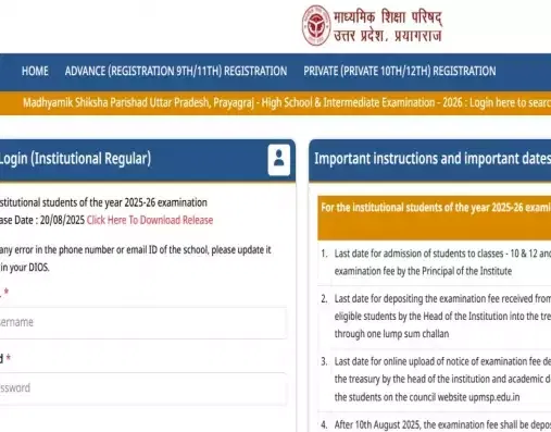 UP Board 2026 10th and 12th Registration Date: The Uttar Pradesh Madhyamik Shiksha Parishad, revised the registration schedule for UP 10 and 12 board examination 2026. Students and parents can access the new schedule from the official website of UP Board. As per the revised date, the exam fee will be accepted till September 1, 2025; earlier it was scheduled till August 10. The schools should complete uploading information regarding the fee deposit by September 6, 2025.