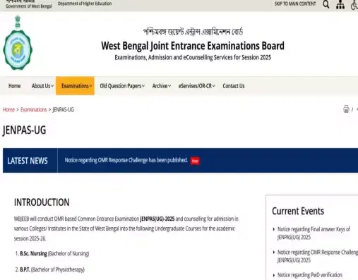 WB JENPAS Result 2025: The West Bengal Joint Entrance Examinations Board has activated the result link for nursing, paramedical, and allied science programs on its website. Candidates can check their scores by logging in to the online portal using their application number and password. Along with the result, the final answer key was also published.