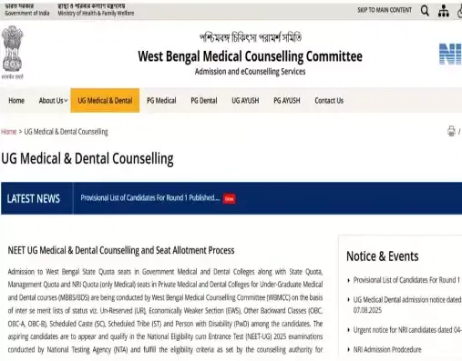 WB NEET UG Round 1 Choice Filling 2025: The West Bengal Medical Counselling Committee has started choice filling for NEET UG Round 1 today, August 14, 2025. Candidates can log in with their registered ID to start filling out choices for preferred colleges. The choice filling facility has been opened only for candidates who are included in the merit list.
