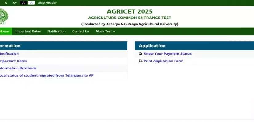 - Go to the official website of the AP AGRICET 2025 (https://angrauagricet.aptonline.in/AGRICET/AGRICET_HomePage.aspx).
