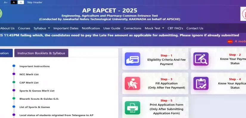 We have provided important instructions for AP EAMCET 2025 application form correction for your guidance:
