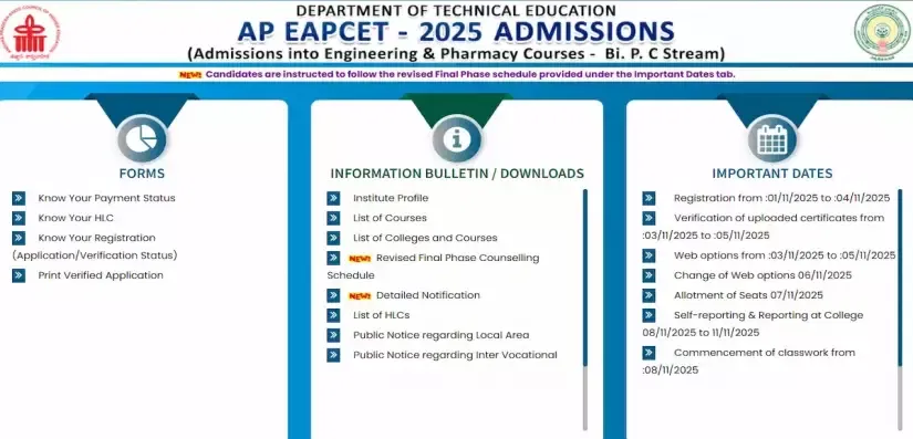 AP EAMCET BiPC Final Phase 2025 Seat Allotment Download Link Activated
